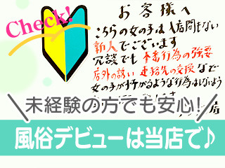 - 初めてで不安もあるかと思いますが、未経験の方でも安心して稼げるお店です。お仕事内容も本番行為は一切無い「超ソフトサービス」です。講習も口頭講習可能、お仕事の事など不安でしたらお気軽にお申し付け下さいませ。
